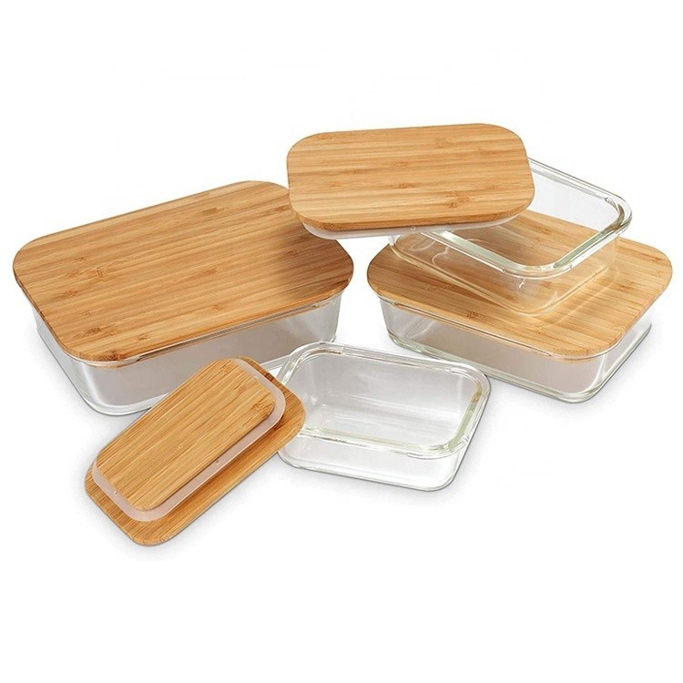 Πιστοποιητικό FSC Περιβαλλοντικά φιλικά γυάλινα δοχεία αποθήκευσης τροφίμων με βιώσιμα καπάκια από μπαμπού
